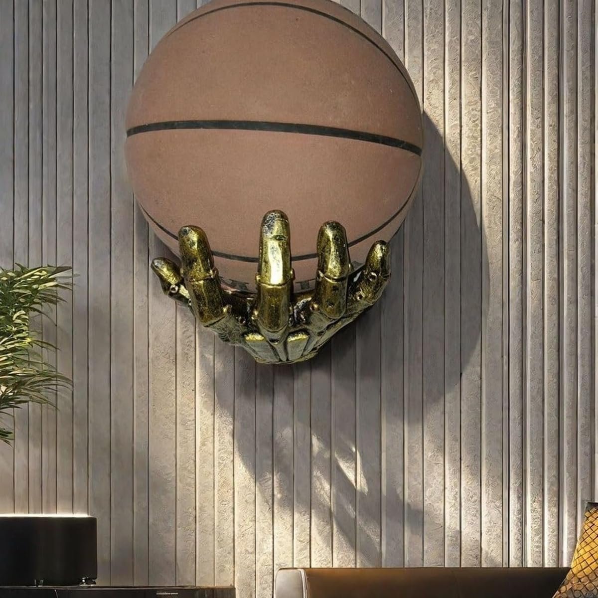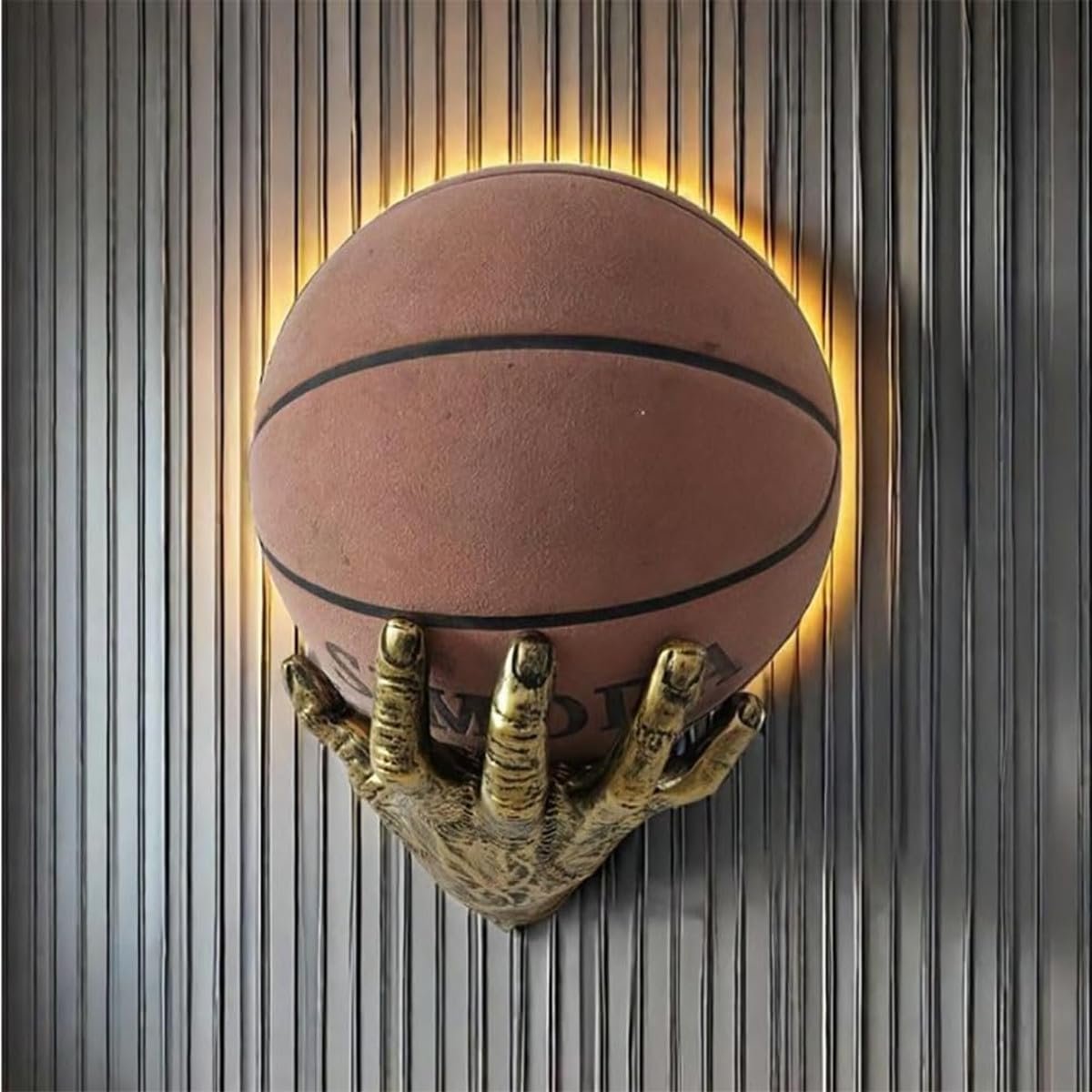 Artistic Palm Sculpture for Sporty Elegance: Unique Basketball Display has the lifelike palm-shaped design with textured 'fingers' adds a modern, artistic touch to sports memorabilia display.It transforms any wall into a striking sports-themed showcase.