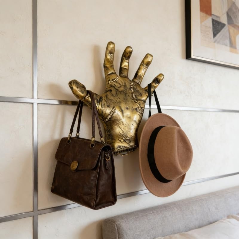 Premium Material: Mechanical Hand Wall Mounted Rack crafted from quality resin and treated with a dual oxidation process,that is sturdy,lasting,combines durability with a worn,vintage aesthetic ideal for steampunk enthusiasts.
